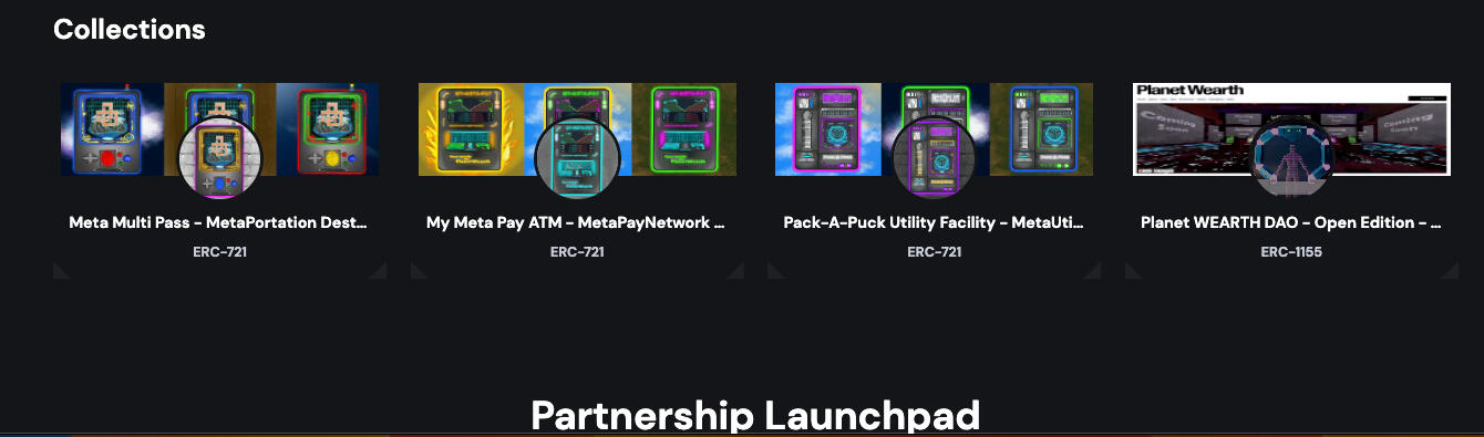 Powered by MetaPayNetwork and MetaUtility, Partnership projects on Planet WEARTH have their own Genesis Edition, MetaPortation Controllers granting their community access to ALL of their exclusive NFT Drops.
