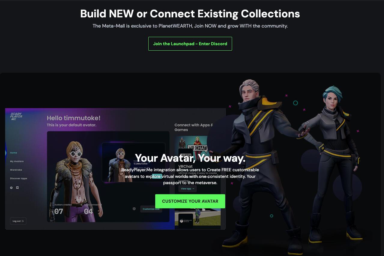 Planet WEARTH is a Launchpad for various projects connecting their communities to web3 and offering their products/services now with NFTs and Metaverse integration.Many of the Projects below are existing real world brands/businesses with tangible goods now discounted and or Exclusive through the PlanetWEARTH We-CoSyetem.By Launching with a Custom MetaPortation Destination Controller NFT, the Brand has the ability to controll who has access to their offerings, protecting the project from typical NFT scammers and bots.For the Community.Visit the Planet WEARTH Discord for more information.